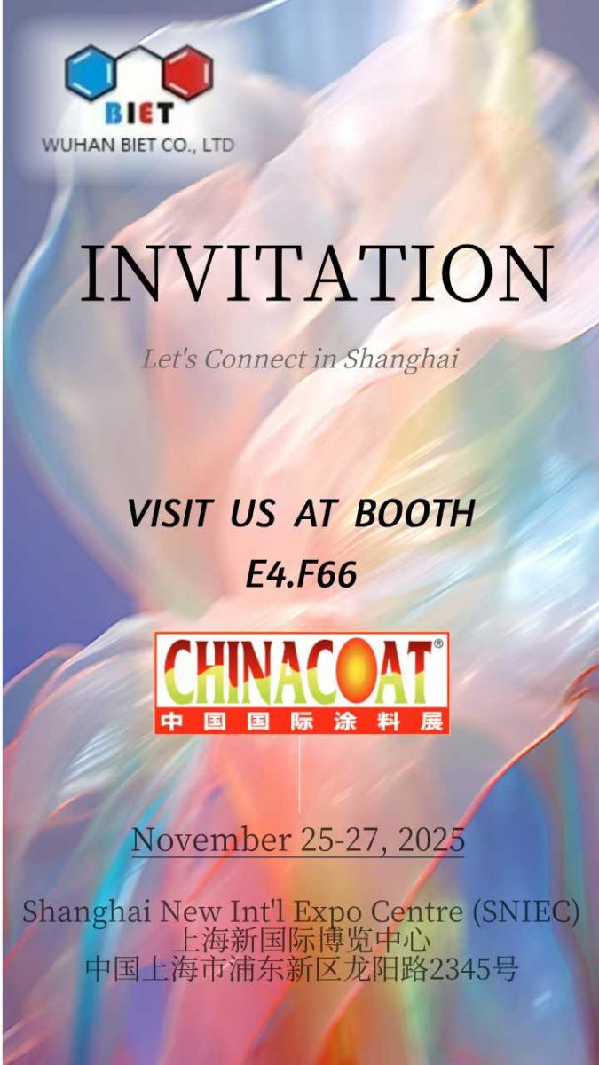 武汉市佰益特化工有限公司诚邀您莅临上海参观 2025年11月25-27日于上海新国际博览中心举行的2025「中国国际涂料展 CHINACOAT」/「中国国际表面处理展 SFCHINA」,我司展台号为: E4.F66